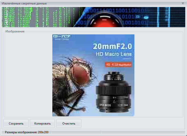 В случае, если секрет содержал изображение, то оно будет показано. Его можно сохранить или скопировать в буфер обмена.