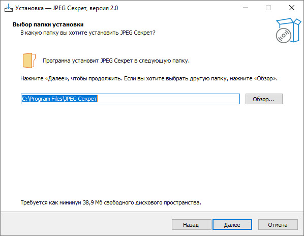 Если Вас не устраивает каталог установки, выберите иное место на диске.
