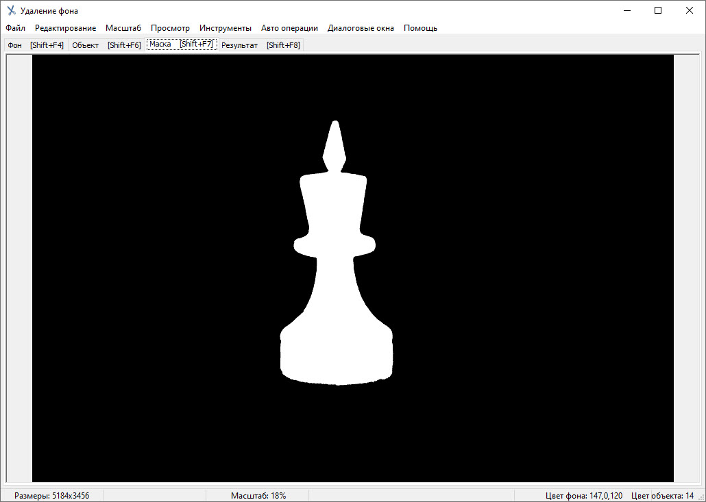 В этой вкладке можно видеть маску (прозрачность) результирующего изображения. Здесь можно использовать инструменты для редактирования.