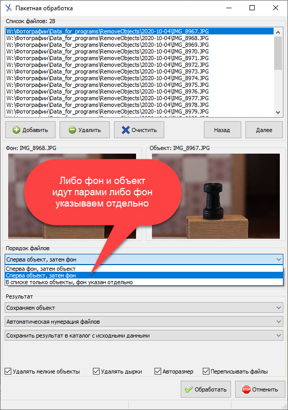 Если фоновое изображение одно, а изображений объектов несколько, укажите фоновое изображение отдельно.