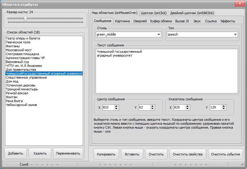 Атрибуты областей содержат описание того, что должно происходить при наступлении тех или ных событий.